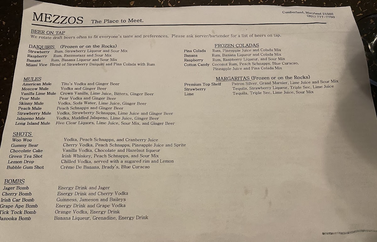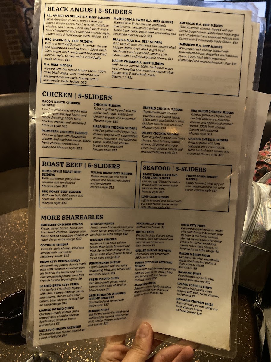Welcome to MEZZOS, a vibrant dining destination nestled at 114 S Centre St, Cumberland, MD. This welcoming establishment delights patrons with its diverse menu, particularly renowned for its mouthwatering sliders. Guests rave about the Black Angus 5-Sliders, featuring deliciously crafted All American Deluxe creations topped with cheese, fresh veggies, and house-made sauces. For a taste of comforting flavors, indulge in the HomeStyle Roast Beef Sliders, which are tender and generously paired with brown gravy.